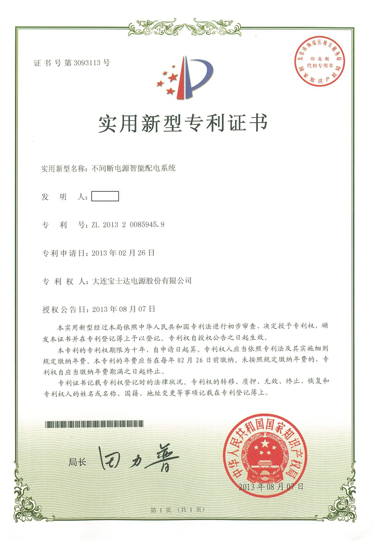 近日,寶士達(dá)UPS電源一批實(shí)用新型專(zhuān)利通過(guò)國(guó)家知識(shí)產(chǎn)權(quán)局審查并獲得頒發(fā)的專(zhuān)利證書(shū),其中包括:UPS不間斷電源系統(tǒng)(專(zhuān)利號(hào)ZL 2013 2 0065683.X),一種數(shù)字化處理控制的在線式不間斷電源(專(zhuān)利號(hào)ZL 2013 2 0065997.X),小型機(jī)房監(jiān)控系統(tǒng)(ZL 2013 2 0065790.2),不間斷電源智能配電系統(tǒng)(ZL 2013 2 0085945.9),具有外部更換保護(hù)的靜轉(zhuǎn)(STS)裝置(專(zhuān)利號(hào)ZL 2013 2 0066242.1),節(jié)能自耦調(diào)壓裝置(專(zhuān)利號(hào)ZL 2013 2 0033012.5)等。