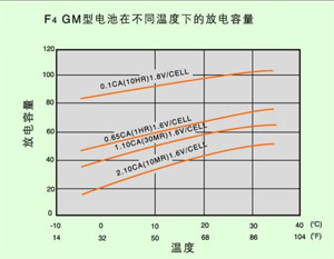 F4表示溫度對GM型電池放電容量的影響;
