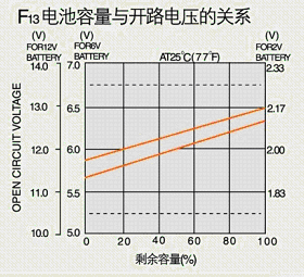 當溫度高于或低于25℃時,浮充電壓應(yīng)校正,校正系數(shù)-3mv/℃/單體。F12為電池浮充電壓與溫度的關(guān)系。