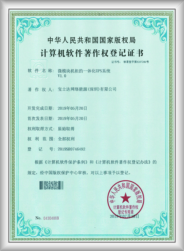 一體化UPS系統(tǒng)軟件著作權(quán) |