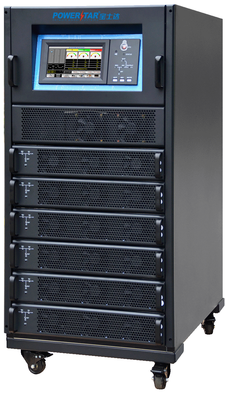 寶士達(dá)MR系列機架式模塊化UPS不間斷電源系統(tǒng),是為滿足電力系統(tǒng)的更高要求而設(shè)計的高可靠性產(chǎn)品。該系統(tǒng)采用在線式雙變換結(jié)構(gòu),三進(jìn)三出的運行方式;所有功率半導(dǎo)體器件均采用進(jìn)口集成模塊,大大提高了系統(tǒng)的可靠性。該電源系統(tǒng)由多臺單個功率模塊并聯(lián),在無主同步的條件下運行,實現(xiàn)了N+X并聯(lián)冗余備份工作,大大提高了系統(tǒng)的整機可靠性;該電源系統(tǒng)具有完善的自我檢測和保護(hù)功能、采用大屏幕帶觸摸屏LCD、圖形化操作界面、智能化的“人-機”對話菜單及遠(yuǎn)程監(jiān)測監(jiān)管功能。該電源系統(tǒng)整流器和逆變器均采用了業(yè)內(nèi)先進(jìn)的三電平技術(shù),使系統(tǒng)的效率達(dá)到95%,是目前業(yè)內(nèi)體積小、效率高、能耗比低、功率密度大的產(chǎn)品,并具有較高的性價比。