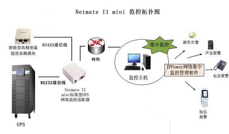 Netmate II mini標(biāo)準(zhǔn)型UPS網(wǎng)絡(luò)監(jiān)控適配器是一款綜合型的智能設(shè)備網(wǎng)絡(luò)集中監(jiān)控產(chǎn)品。產(chǎn)品內(nèi)置多種不同協(xié)議,支持目前國內(nèi)外絕大多數(shù)品牌不同型號(hào)的UPS、精密空調(diào)、智能配電柜等,集中在統(tǒng)一的平臺(tái)中進(jìn)行監(jiān)控。