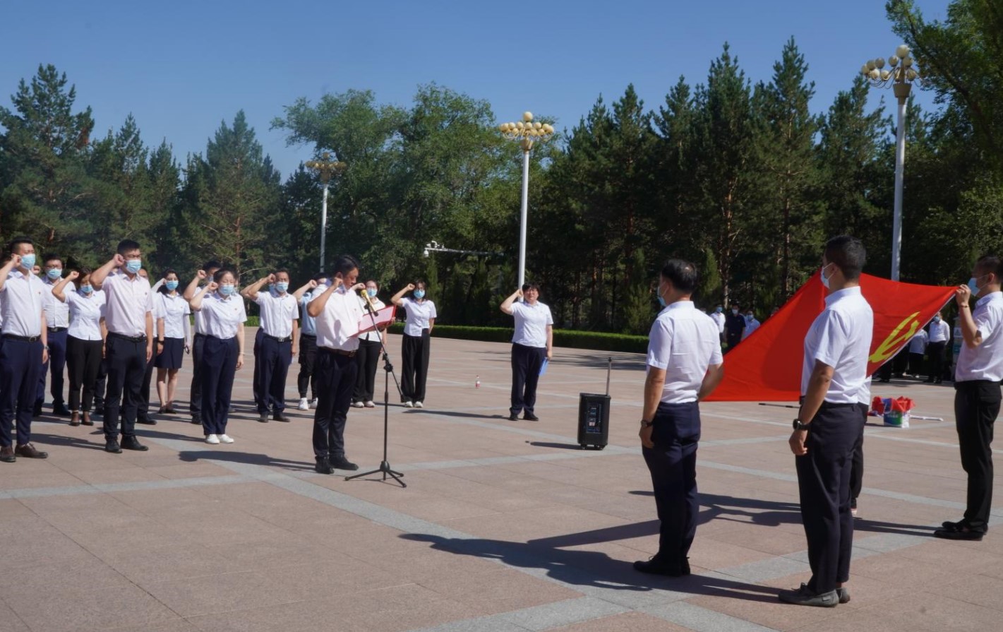 “我志愿加入中國共產(chǎn)黨,擁護黨的綱領(lǐng),遵守黨的章程,履行黨員義務(wù),執(zhí)行黨的決定......”在鮮紅的黨旗下,全體黨員舉起右拳許下錚錚誓言。鏗鏘有力的入黨誓詞充滿了老黨員用不懈奮斗兌現(xiàn)莊重承諾的驕傲,也展現(xiàn)了新發(fā)展黨員訴說著對黨忠誠、敬業(yè)奉獻的自豪。新發(fā)展黨員閆淑靜、王舒嘯同志在黨旗下表態(tài)發(fā)言:今后爭做“政治過硬、業(yè)務(wù)精通、無私奉獻、品質(zhì)高尚”的表率,時刻以共產(chǎn)黨員的標準嚴格要求自己,不斷發(fā)揮黨員的先鋒模范作用,永遠擁護中國共產(chǎn)黨,永遠聽黨話,跟黨走。
